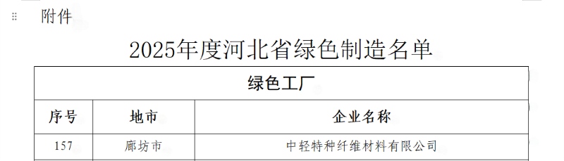 近日,河北省工業(yè)和信息化廳公示了2025年度省級綠色制造名單,中國制漿造紙研究院所屬中輕特種纖維材料有限公司(以下簡稱“中輕特材”)憑借其在綠色生產、節(jié)能減排和可持續(xù)發(fā)展方面的突出表現(xiàn)成功入選,成為本年度省級綠色制造體系的先進典型之一。