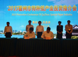 10月16日下午,舉辦了2015特種紙產(chǎn)業(yè)發(fā)展和節(jié)能減排高峰論壇。首先進(jìn)行的是衢州市特種紙產(chǎn)業(yè)投資推介會(huì),會(huì)上推出了11個(gè)項(xiàng)目和簽約儀式。在中國(guó)造紙學(xué)會(huì)常務(wù)副理事長(zhǎng)曹振雷、中國(guó)造紙協(xié)會(huì)副理事兼秘書(shū)長(zhǎng)趙偉及衢州市政府領(lǐng)導(dǎo)的見(jiàn)證下,中國(guó)制漿造紙研究院院長(zhǎng)曹春昱、中國(guó)制漿造紙研究院黨委書(shū)記孫波、中國(guó)制漿造紙研究院衢州分院院長(zhǎng)劉文等先后與衢州市政府及相關(guān)單位就有關(guān)項(xiàng)目進(jìn)行了簽約。
