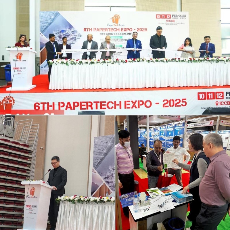 2月10日,考察團(tuán)受邀出席第六屆孟加拉造紙科技博覽會(PAPERTECH EXPO)。中國造紙院朝魯門博士作為特邀嘉賓在開幕式上致辭,分享了中國造紙行業(yè)的最新進(jìn)展和未來展望。在展會現(xiàn)場,中國造紙院進(jìn)行了企業(yè)介紹與成果展示,吸引了眾多參展觀眾的廣泛關(guān)注和濃厚興趣。
