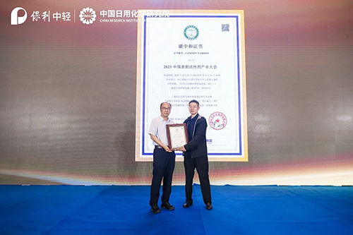 方圓標(biāo)志認(rèn)證集團(tuán)有限公司和柏能新能源(深圳)有限公司作為此次會議的碳中和支持單位,為中國日化院頒發(fā)碳中和證書。