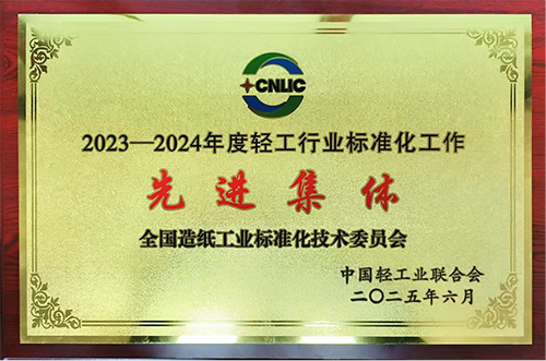 中國制漿造紙研究院承擔秘書處單位的全國造紙工業(yè)標準化技術(shù)委員會獲得“2023—2024年度輕工行業(yè)標準化工作先進集體”榮譽稱號。