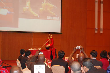 聯(lián)歡會(huì)上,由中食院工會(huì)牽頭組織的來自院科技發(fā)展部、物業(yè)部、財(cái)務(wù)部和食品、發(fā)酵、國(guó)際合作等各部門工作人員表演的扇子舞及變臉、茶藝、抖空竹等節(jié)目精彩紛呈,博得了全場(chǎng)觀眾的陣陣掌聲。學(xué)員們也通過自編自演的節(jié)目表達(dá)了對(duì)主辦單位、承辦單位的感激之情和中國(guó)人民的深厚情誼。商務(wù)部、集團(tuán)公司和院領(lǐng)導(dǎo)主持的現(xiàn)場(chǎng)抽獎(jiǎng)活動(dòng)將晚會(huì)推向高潮,2個(gè)小時(shí)的晚會(huì)在熱烈友好的氣氛中圓滿結(jié)束。
