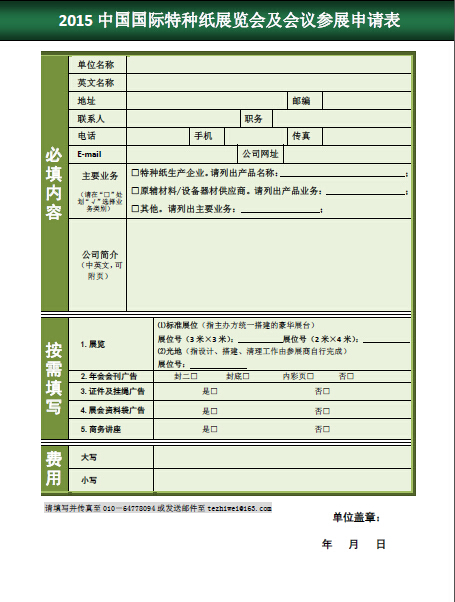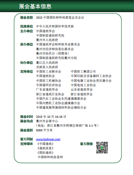 “2015中國(guó)國(guó)際特種紙展覽會(huì)及會(huì)議”參展邀請(qǐng)函