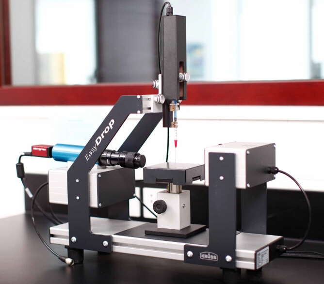 功能/用途:可以對液滴滴落過程拍照和攝像,準(zhǔn)確測出液滴滴落瞬間與表面接觸的角度,從而可以判斷吸收液滴的快慢,以表面物質(zhì)的疏水性能。