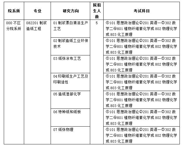 中國制漿造紙研究院二〇一六年碩士研究生招生專業(yè)目錄