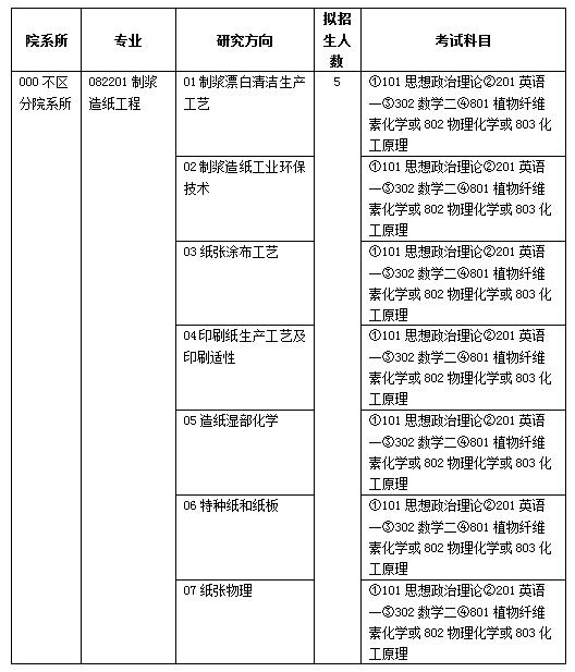 (三)全國(guó)統(tǒng)考初試科目為思想政治理論、英語(一)、數(shù)學(xué)(二)、植物纖維素化學(xué)或物理化學(xué)或化工原理,其中思想政治理論、英語(一)、數(shù)學(xué)(二)由教育部統(tǒng)一命題,植物纖維素化學(xué)、物理化學(xué)、化工原理由我院組織命題。