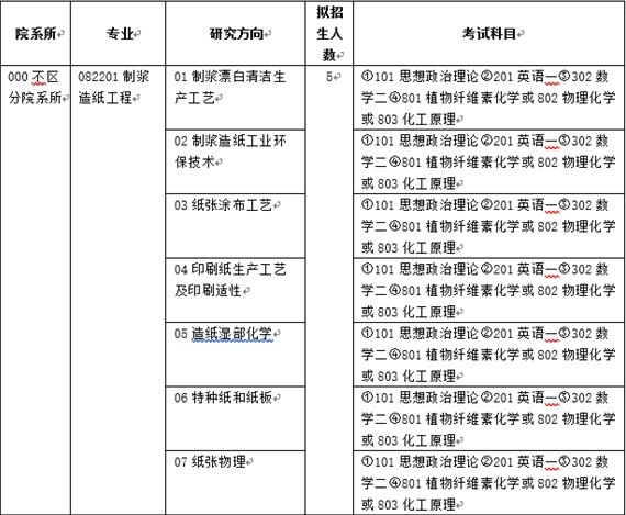 中國制漿造紙研究院有限公司二〇二〇年碩士研究生招生專業(yè)目錄