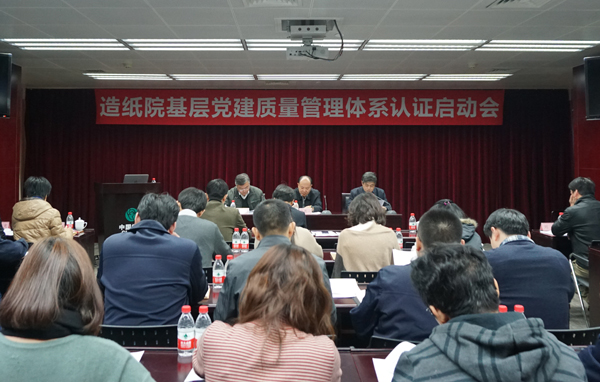 12月5日上午,造紙?jiān)狐h委組織召開了基層黨建質(zhì)量管理體系認(rèn)證啟動會。中輕集團(tuán)公司黨委副書記馬思一、黨委辦公室主任李義民、中大華遠(yuǎn)認(rèn)證中心副主任張劍、市場部主任王彤應(yīng)邀出席了會議。造紙?jiān)狐h委委員、紀(jì)委委員、支部書記及研發(fā)黨支部全體黨員共50余人參加會議。