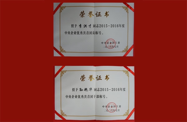 根據(jù)中央企業(yè)共青團(tuán)評選表彰有關(guān)制度,中央企業(yè)團(tuán)工委研究決定:授予李洪才2015-2016年度“中央企業(yè)優(yōu)秀共青團(tuán)員”榮譽(yù)稱號;授予孫艷華2015-2016年度“中央企業(yè)優(yōu)秀共青團(tuán)干部”榮譽(yù)稱號。
