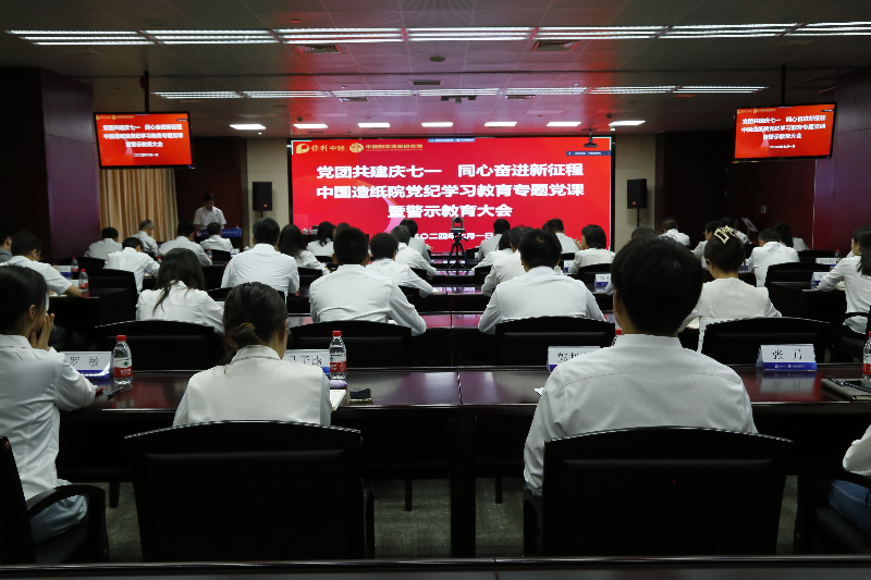 按照保利中輕黨委黨紀(jì)學(xué)習(xí)教育統(tǒng)一部署和造紙院黨委相關(guān)安排,7月1日,中國制漿造紙研究院(以下簡稱“中國造紙院”)黨委召開“黨團(tuán)共建慶七一 同心奮進(jìn)新征程”黨紀(jì)學(xué)習(xí)教育專題黨課暨警示教育大會。保利中輕副總經(jīng)理,中國造紙院黨委書記、董事長孫波以《深化黨紀(jì)學(xué)習(xí) 守住“四個關(guān)口” 護(hù)航造紙院高質(zhì)量發(fā)展》為題講授黨紀(jì)學(xué)習(xí)教育專題黨課。黨委委員、常務(wù)副總經(jīng)理田超主持大會。
